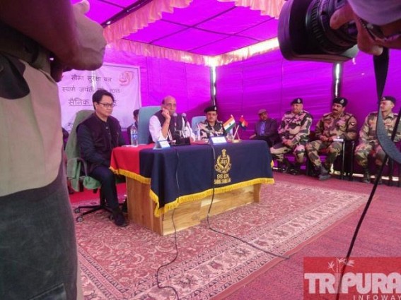 AGARTALA, February 15 (TIWN): President Pranab Mukherjee appreciated Home Minister Rajnath Singh's suggestion to actively involve the governors in the internal security related apparatus and requested him to consider convening separate meetings with groups of governors having similar problems like the northeastern states, coastal states and states with international borders.He also suggested that the defence minister, similarly, involve governors of states having an international border in a focused interaction on border and security issues.The president said the authority that governors or Lt. Governors exercise is based on a moral premise, and as long as the exercise of that authority is confined to the boundaries of the Constitution, he did not see the possibility of any diminution of their role.Union Home Minister Rajnath Singh alongwith Kiran Rijiju, Minister of state for Home affairs, Sambhu Singh, Joint Secretary of Ministry of Home Affairs and other high officials visited BOP Khantalang of 98 BN BSF on Saturday to take stock of internal security in Tripura sector. Addressing the 46th conference of governors at Rashtrapati Bhavan, Mukherjee said governors and Lt.