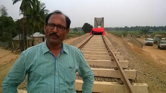 Udaipur, Tepania, March 29 (TIWN) : The construction of ‘Bagma to Chandrapur Railway line’ is progressing very slowly and has stopped after reaching Tepania. Local people are seemed to be unhappy with this slow progress of the work, but the Railway site in-charge was satisfied with the ‘trolley test drive’ on the newly made ‘track’ which held on last Sunday.The local habitants said, for more than a year back, Badal Chowdhury (Former Finance Minister) announced that the station will be made at Tepania and the local people will be benefited from it. But this is now becoming a matter of fantasy for local residents, instead of completing the full work the line could exceed only 50 meters since then.While talking to TIWN correspondent, the site in-charge P. Pratik said very confidently, “Our target is to complete our work from Matabari to Silchar before the end of December 2015, and before 2016 people will get their Rail line completed.â€