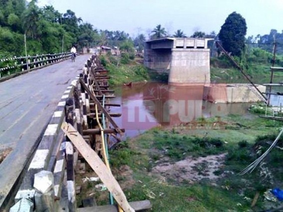 AMARPUR, April 1 (TIWN) : The long pending demand for Pacca Bridge over Gomati River of Amarpur Rangamati area remain unsolved for last 15 years .Poor quality of Wood Bridge still hanging . Sources said, the bridge was constructed almost a decade back but no step yet been taken to repair it.