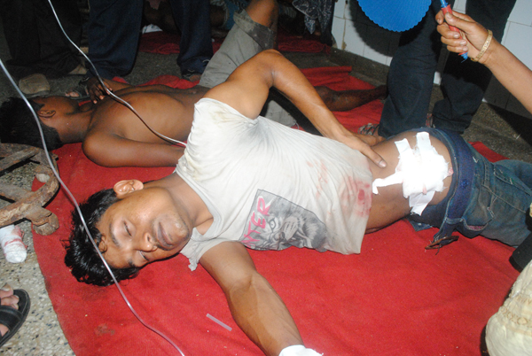 Injured villagers brought to GB Hospital, undergoing treatment. Many in critical condition. TIWN Pic Friday night 11.30pm