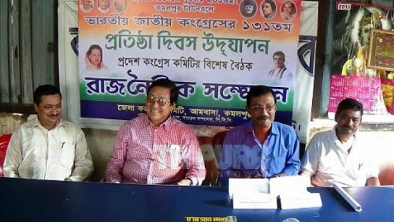 KAMALPUR, Dec 25 (TIWN): 131st spring would have been in tune for Congress or INC on 28th December next. And on that day the party, probably for the first time in its history in the state, would observe State level Foundation Day outside Agartala, at Kamalpur. PCC President Birajit Sinha and organizing District Congress President Manoj kanti Deb attended a press meet at Kamalpur Press Club this afternoon.