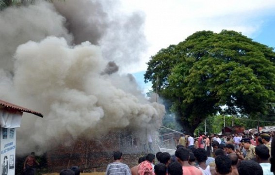 AGARTALA, July 29 (TIWN): A massive fire gutted eight shops and two domestic households at Champaknaghar market in the outskirts of Agartala city on Tuesday afternoon, official sources said. The fire broke out at 1:15 PM today; no casualty or injury was reported from the incident, a police official on duty at the Jirania police station said later today.