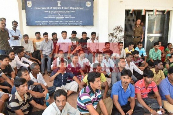 AGARTALA, Aug 28 (TIWN): Following a joint movement by Forest Dept. contractual / casual employees demanding regularization, the Tripura Govt has selectively regularized only 148 employees that has emerged huge resentments among the deprived section of Forest Dept employees who were not regularized. While agitating in front of the forest dept office (Aranya Bhawan) at Gorkhabosti, the employees said, “The Central Govt in 2016 via a notification strictly told Tripura Govt that it has to follow the guidelines of the Central regularization policy. But the state govt has not regularized us till dayâ€. The notification was published in 2014 dictating the regularization of the casual staffs working on temporary basis, but no action has been taken so far.