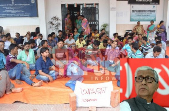 Earlier, Manik Sarkar who had made the Forest Dept contractual employees happy on May-31st saying that they will be regularized. The employees who were denied by Forest & Finance Minister for meeting was very happy when atlast the Chief Minister talked to them and said, "I will open your files". After CM's promise the irregular forest dept employees wanted to meet the Finance Minister but his PA didn't allow to meet them. But suddenly it has been leaked that 148 employees have been regularized by Forest Dept whereas others have not. The deprived irregular employees thus have demanded to go for hunger strike that can be extended with 'Hunger Strike till Death'.