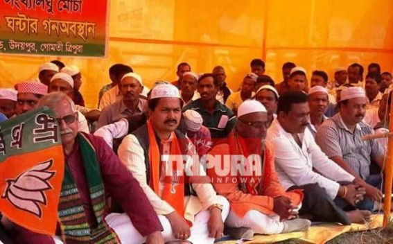 UDAIPUR, Nov 27 (TIWN): 11 points of demands BJP's Minority Morcha led Morcha President Jasimuddin, MLA Pranjit Singha Roy Padma Mohon Jamatia sat in 6 hrs demonstration at Udaipur with 11 points of demands.