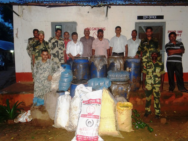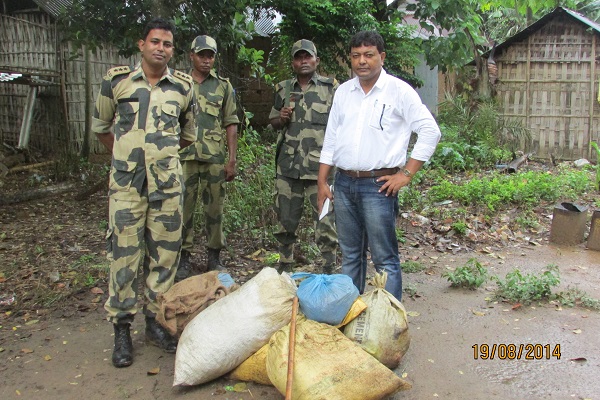 Sonamura, August 20 (TIWN): Acting on a tip-off, a joint raid involving the Sonamura Sub-Divisional Administration, BSF 158 Battalion and Kalamchowra P.S. was carried out on 19.08.2014 in Nutan Colony of South Kalamchowra Gram Panchayat under Boxanagar R D Block. The Raid, headed by Subhasis Das, SDM Sonamura, spanned about three hours, from 2.30 p.m. to 5.30 p.m. About 12 houses and adjoining places were searched during the raid, and about 800 kg of dried cannabis (ganja) was recovered, market value of which is estimated at rupees forty lakh.