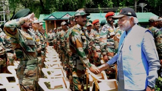 PHOTO : PM Modi with Indian soldiers at Kashmir. TIWN File Photo