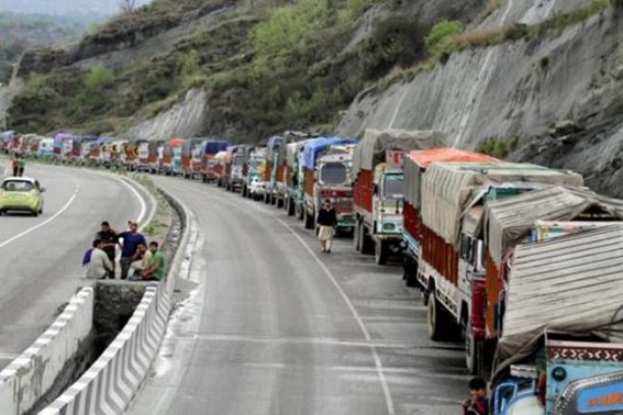 Over 2,000 trucks, most of them carrying essentials to the Kashmir Valley have been stranded at various places on the highway.