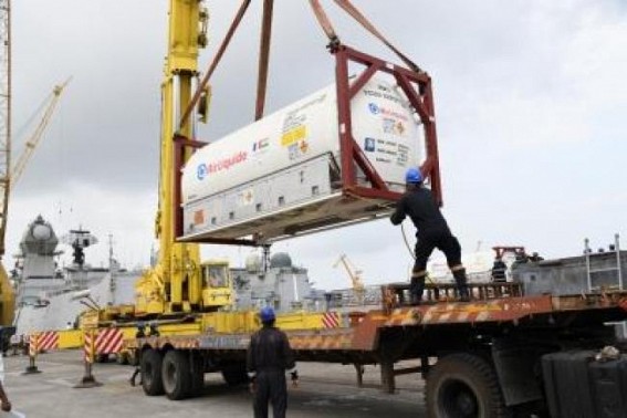 Visakhapatnam, May 26 (TIWN) IndianOil unloaded a consignment of 11 ISO tanks filled with Liquid Medical Oxygen (LMO), carried from Singapore by Indian Navy's INS Jalashwa, at Vishakhapatnam Port on Sunday.