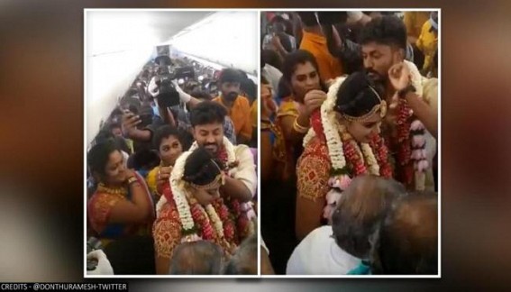 Chennai, May 26 (TIWN) A mid-air marriage at Madurai has turned into a major controversy with social media criticizing the wedding in the air as well as not adhering to Covid protocols.