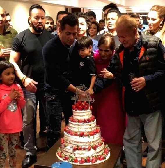 A photograph of Salman cutting his birthday cake along with his nephew Ahil, father Salim, mother Salma and close friend Iulia Vantur, is doing the rounds on social media. Industry friends who reportedly turned up to wish the superstar included Katrina Kaif, Tabu, Huma Qureshi and Daisy Shah. Another viral video, Salman is seeing cutting a four-tier cake, holding his nephew Ahil in his hands. He is seen surrounded by Salma, Salim and Helen in the video. Arpita Khan can also be seen cheering for the "Wanted" actor. On the acting front, Salman''s latest release "Dabangg 3", which also features Sonakshi Sinha and Saiee Manjrekar, has crossed the Rs 100 crore benchmark at the box-office. He is now gearing up for his next titled "Radhe", which is slated to release in 2020.