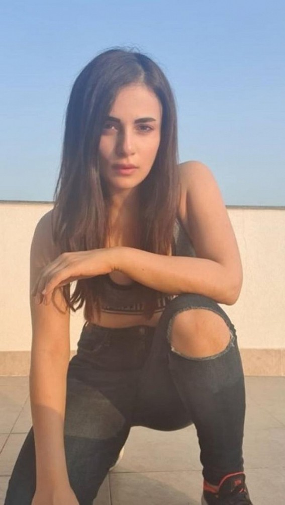 In a new Instagram picture, Radhika sits dressed in a sports bra and ripped pants. For the caption, she borrowed a dialogue from the popular nineties tele-series "Shaktimaan".
