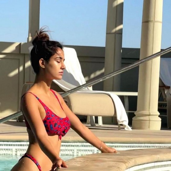 Mumbai, Feb 17 (TIWN) Bollywood actress and fitness enthusiast Disha Patani set the mercury soaring on Tuesday with her latest picture of a cool dip in the pool, clad in dark pink bikini.