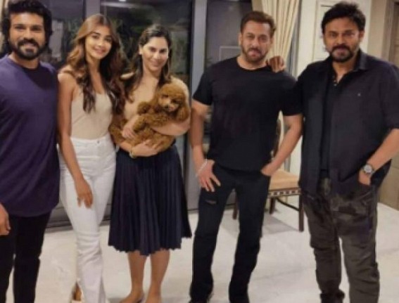 Hyderabad, June 27 (TIWN) 'RRR' actor Ram Charan and his wife Upasana host the 'Kabhi Eid Kabhi Diwali' actors, Salman Khan, Pooja Hegde, and Venkatesh Daggubati.
