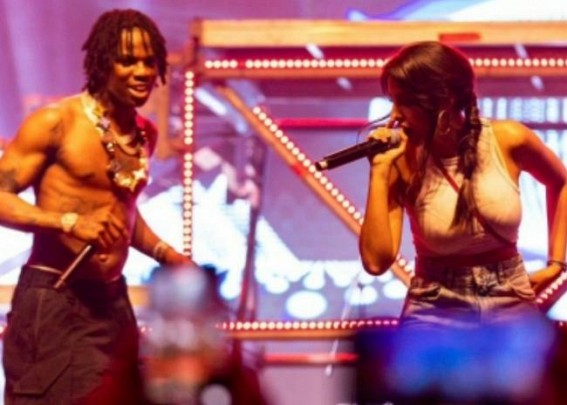 Mumbai, May 14 : Actress-dancer Nora Fatehi and Nigerian singing sensation Rema set the stage on fire during his performance in Mumbai.