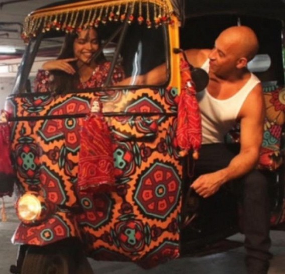 Diesel took to Instagram, where he shared a picture posing in a colourful auto-rickshaw. The actor is seen dressed in a white vest paired with black pants while Deepika wore a colourful dress as she sat next to him on the driver’s seat.