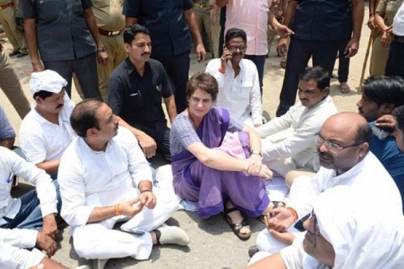 Agartala, July 19 (TIWN) Congress general secretary Priyanka Gandhi Vadra has been detained near UP's Mirzapur on her way to Sonbhadra, where Section 144 has been imposed, to meet the families of those killed in firing over a land dispute. The Congress leader sat on the road during a dharna with her supporters and was soon taken into preventive custody. Refusing to back down, Gandhi told reporters, “We won't be cowed down. We were only going peacefully to meet the victims’ families. I don't know where they are taking me. We are ready to go anywhere.â€