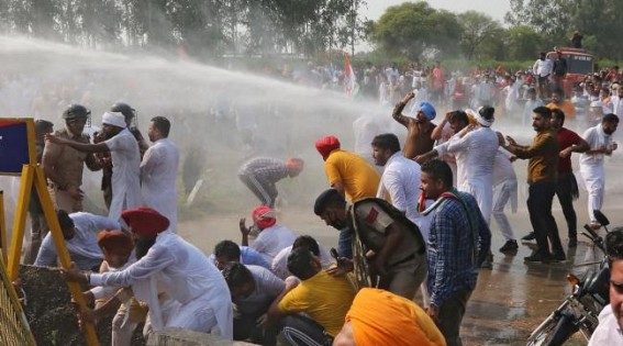 Chandigarh, Sep 21 (TIWN) Hundreds of Youth Congress activists, led by party's Punjab unit President Sunil Jakhar, were stopped from heading towards Delhi at the Haryana border near Ambala on Sunday with the police using water cannons to disperse them.