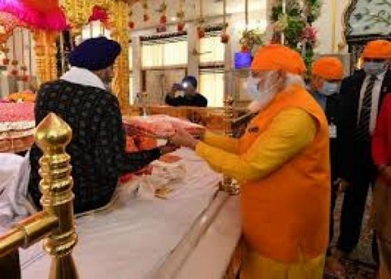 New Delhi, Dec 20 (TIWN) Prime Minister Narendra Modi made a surprise visit to the Gurudwara Rakabganj in Delhi on Sunday early morning and paid tributes to Guru Tegh Bahadur for his supreme sacrifice.