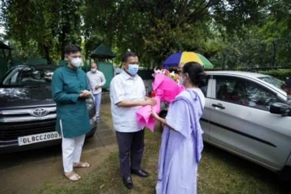 New Delhi, July 28 (TIWN) West Bengal Chief Minister Mamata Banerjee met Delhi Chief Minister Arvind Kejriwal here on Wednesday evening and discussed current political issues.
