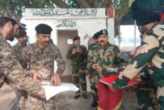 Jammu, Jan 27 : Border Security Force (BSF) troopers exchanged sweets with Pakistan Rangers on Thursday to mark India's 74th Republic Day.