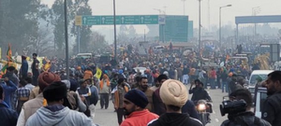 Chandigarh, Feb 13 : Protesting farmers on Tuesday damaged multi-layer barricades put up by the police to stop them at the border, by removing cement and barbed wire fencing with tractors.