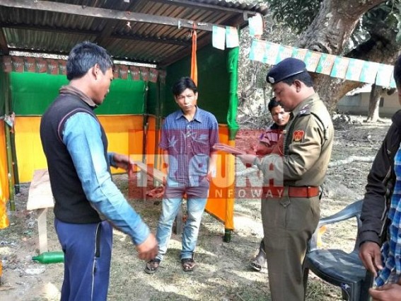 At Udaipur in Matabari constituency 32 of No-42 of voter office in Dataram Thalabari miscreants at night have damaged the flags and festoons of a booth office and also set the party offices with fire.
