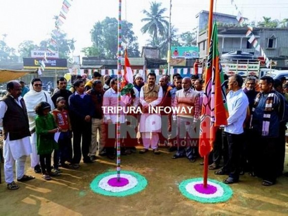 MLA Pranajit Sinha Roy hoisted the National flag in the BJP programme at Sonamura Chowmuhani, Udaipur.