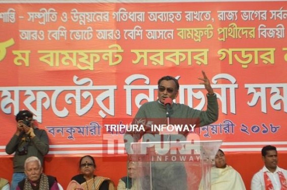 AGARTALA, Jan 30 (TIWN): Manik Sarkar led communists generated mass unemployment caused Tripura's massive unemployment crisis, with topmost position in unemployment rate among all the 29 states of India, but West Bengal leader Surja Kanta Mishra while addressing at Bankumari (Agartala) said, 'Under the BJP Govt, unemployment rates are increasing massively. Tripura's BJP, IPFT do not understand what's called unemployment as Tripura's all households have livelihoods, but the rest of the country have become like a hell under the BJP Govt"."Before coming in power, Prime Minister Narendra Modi promised that with a single missed call people will get jobs, but after coming in power the existing jobs are also cutting off and the unemployment rates are fueling tension among youths leading heavy frustrations", said Mishra.