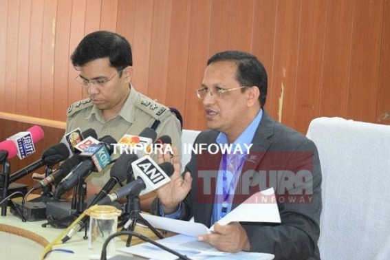 AGARTALA, Feb 16 (TIWN): Without halting the mainstream of life as much as possible, section-144 has come under action since 4 PM today according to Election Commission's guidelines. Across 8 Districts of Tripura, SPs and District Magistrates held press conferences with official announcements of implementing Section-144 and the ending of poll campaigning for the Assembly Election-2018, along with imposing prohibitions on the use of loud speaker, campaigning with flags, festoons, rallies or gatherings etc. DGP A K Sukla has announced a toll free number 15103 for the common people via which they can register their complaints in case of any untoward incident during the poll hours. The helpline will remain active 24 X 7 to help the voters, which will be helpful also for police to maintain the law and order.