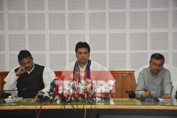 AGARTALA, March 10 (TIWN): BJP led Tripura Govt after its first cabinet meeting at the Secretariat on Saturday, held a press conference announcing about 7th Pay Commission. Chief Minister Biplab Deb has asked the Govt employees at the same time to be punctual and to complete everyday's work before leaving the office. Addressing the employees via media CM said, "The people who are in Govt jobs, I like to tell you to do your duty rightly, be time-bound, come to office in correct time and also complete everyday's work in time". "We need to develop the work-culture. I would not say, we don't have work-culture, but we should be more into that. Govt is by the people. After people have voted, then only Govt came in power. The Govt employees are those, via whom, the State Govt will work. You are the representatives of the Govt and thus I am calling all officials of each department to come in office in time and to be punctual".
