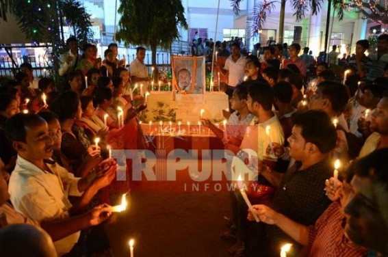 Purandar Debbarma was a resident of Khumulwng, has left his family behind him. The 10323 teachers in his remembrance have paid tribute to him. Candles were lighted before his photo in front of the Rabindra Satabarshiki Bhawan.
