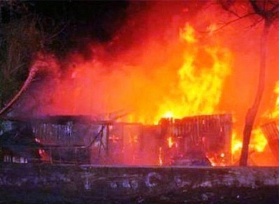 Side by side situated two grocery shops just beneath the Ampi block turned into ashes at about 12 am last night. Being informed the fire service authority rushed to the spot but before they reached two grocery shops totally burnt.