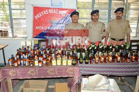 AGARTALA, March 19 (TIWN): With a successful drive, Amtali police have seized plenty of liquor bottles today in a raid across Amtali market area.