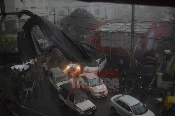 AGARTALA, March 30 (TIWN): In the afternoon at 4.30 PM, a sudden storm followed by heavy rain scattered Agartala City.