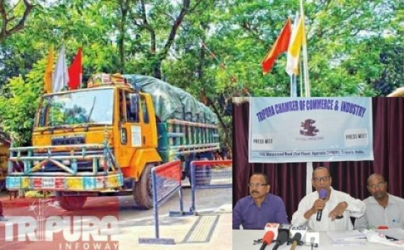 AGARTALA, March 30 (TIWN): Since the beginning of export-import business in 1994, Indo-Bangla trades were benefiting only the Bangladesh Govt, whereas in exchange there was hardly any 'piece of cake' left for businessmen here, which is also one of the major reason behind state like Tripura's poor revenue income. The reason behind is mainly Bangladesh govt's heavy restriction upon Indian exports at the cost of India's heavy relaxations to Bangladesh in custom duties. Addressing media, Tripura Chamber of Commerce & Industry President ML Debnath today said, "The reason behind Tripura's poor performance in export business is nothing but Bangladesh Govt's too much restriction to receive goods via Tripura border". At the same the Dept's President also has requested the Govt of India to solve the complications by holding a talk with the Govt of Bangladesh."There is a massive trade imbalance between Tripura and Bangladesh . Whereas Bangladesh income via Tripura has been Rs. 350 crores, at the same time Tripura's income via Bangladesh is less than a crore, indeed Rs. 80 lakhs hardly", ML Debnath added.