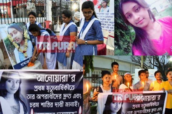 AGARTALA, April 9 (TIWN): Students from various depts in Tripura have remembered Anuara Choudhury today on her 1st death anniversary, who met tragic ending of her life at 16 yrs. This is the date, when before 1 year Tripura Polytechnic student Anuara Choudhury died very unnaturally. Anuara's death raised roars of protest across the state, but after 1 year also, justice is silently weeping, even after students placed deputation to the new BJP Chief Minister Biplab Deb. Anuara Chhatra Samaj had demanded proper investigation in Anuara murder case, who was killed in 2017, May 9.‘Anuara Chhatra Samaj’ led by some youths placed a deputation to the Chief Minister Biplab Deb on March 25. However, so far no development has been seen in her murder case, neither there is attempt to punish the doctors who certified Anuara's death as "Heart Attack", instead of "Poison-Attack".