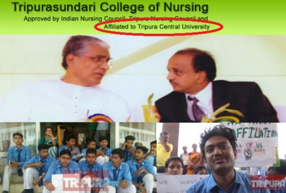 AGARTALA, April 17 (TIWN): Tripurasundari college of Nursing was established in 2011 at Tripura by Prof.B.Sivaramakrishnan, Chairman, Sri Sankara Educational & Charitable Trust,Trichy,Tamilnadu but recently has been accused for having "No Affiliation", whereas before the admission of the students in the College, it's said that the College has affiliation. On yesterday there were massive protests led by the victim students, who are studying in the College. But after the so much of protests also, the College is propagating in its website that it's affiliated to Tripura Central University, whereas University is not giving them results. In the middle, the students have become the victims of the corrupt system.