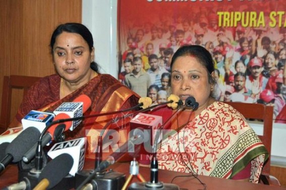 In a press conference, MP Jharna Das Biadya at Melarmath Headquarter alleged about various ongoing violence in the state under the BJP Govt. Addressing the press meet, Jharna Das said, “Today CPI-M leaders are bound to sign in resignation papers. If somebody comes in my house,the person is threatened. We are unable to launch protest, rallies. Such situation had never emerged in Tripura before….no democracy is existing anymore in Tripura”.