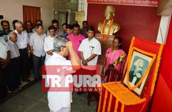 Bijan Dhar was addressing at CPI-M headquarter at Melarmath after the CPI-M members paid floral tributes to Karl Marx.