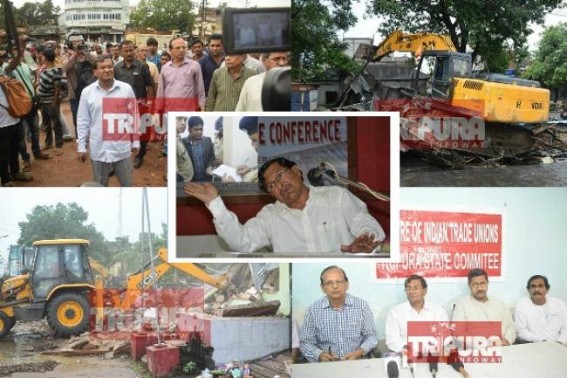 Today the demolition drive under West DM Millind Ramteke has begun, whereas in next few days the actions to be continued till the last number of the illegally built party offices' list. But following the party offices demolition built over govt lands, CPI-M has claimed that in such union offices the passengers used to spent times and used them their resting place. However in last 25 years, instead of allowing passengers to take rest inside their party offices, the passengers-shed at Nagerjala and various other places were occupied by CITU and trade unions, but today CPI-M MP Shankar Prasad Datta and CPI-M Ex-Minister Manik Dey both have claimed that those party offices which have been bulldozed were used by passengers to take rest under the shed.