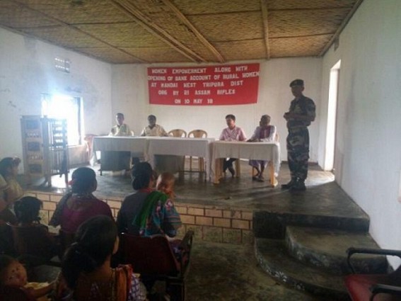 AGARTALA, May 10 (TIWN): 21 Sector Assam Rifles as part of its endeavour to take beneficial Government Schemes to the common masses in remote areas, falicitated opening of Sukanya Samridhi accounts for benefit of girl child at Thaiplok Phang village in West Tripura district on 10 May 2018 . A total of 300 people including women and village elders attended event.