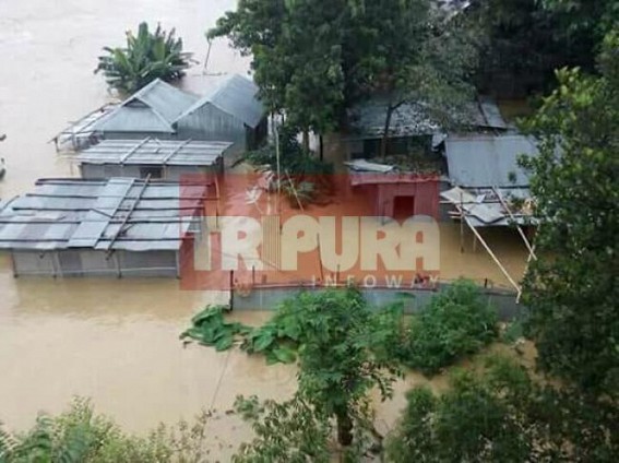 Waters of many rivers of Tripura are flowing over the danger levels. Flood waters inundated many villages, homes, paddy fields highways besides low-lying areas.