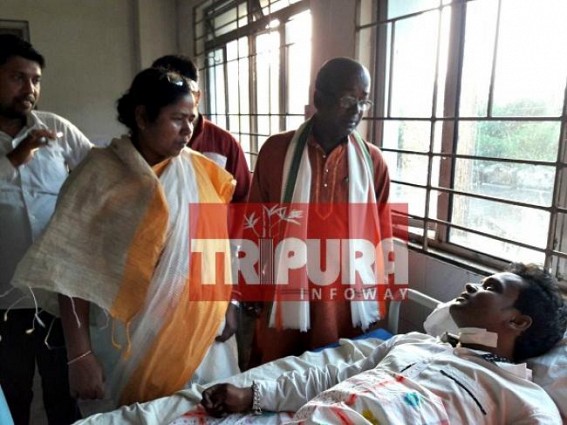 AGARTALA / DHARMANAGAR, June 20 (TIWN): BJP leaders led by Pratima Bhowmik have met Suman Debnath, attacked photo-journalist of TIWN, News Vanguard, Sandyan Patrika at Dharmanagar hospital on Tuesday.