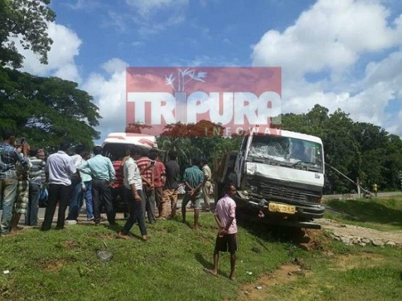 The incident took place on Agartala Sabroom roadway near Patichari Drop Gate, when a bus and loaded truck hit each-other at around 10 am.