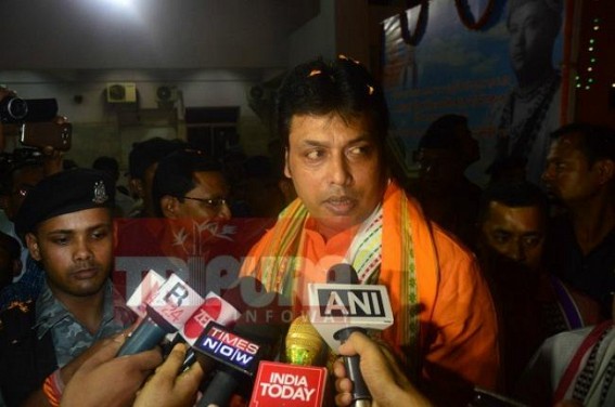 AGARTALA, July 7 (TIWN): Once again, Tripura is in national limelight for wrong reasons because of Chief Minister Biplab Deb’s immature reply on Mob-lynching issue according to Times of India and Times Now Senior Correspondent report, when he was asked by journalists in this particular issue. A video is now viral since the occasion of renaming of Agartala Airport's name after Tripura's last king Maharaja Bir Bikram Manikya Bahadur on July4, where Chief Minister Biplab Deb has been spotted saying in reaction to mob-lynching, “A wave of happiness is existing everywhere in Tripura. You see my face. I am happy and you also try to be happyâ€. This statement came after Biplab Deb said in reply of Times Now correspondent Arindam Das.