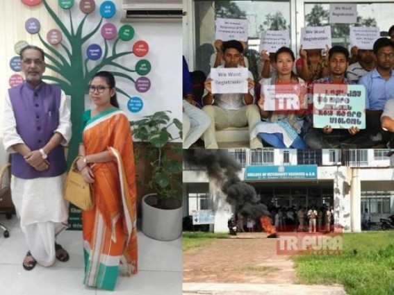 During the strike the students hanged banners at the gate saying, “We are mouths without Teeth without Registration”, “Without Registration we are Worthless” etc. The students also raised voice saying, “Wake up authority”, “Value our tears”, “You can’t play with our futures”, “Please Give our registration, we want to work for the society”. Tripura State Veterinary College's affiliation was expired and since two years students are passing out without any registration numbers. On that time, when students started tire burning and Day-3 of the strike,from state govt side 15 days were sought.