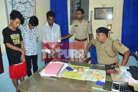 PHOTO : Drug Peddlers arrested with Brown-Sugar, Drug Tablets by East Agartala Police. TIWN Pic July 10