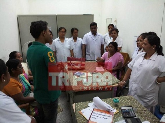 Two members of All Tripura Nursing Association Shikha Deb, Anjali Das have met the nurses at there and asked them about the whole incident. The nurses said, even though they were not physically attacked but the patient party was using slang languages to hit them. Later the lady staff locked herself inside a room to save herself from the angry patient.