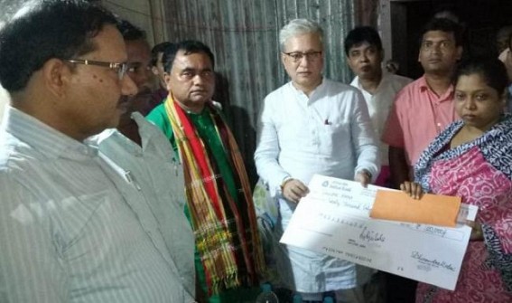 On behalf of Sukanta Chakraborty, Deputy CM Jishnu Debbarma has handedover the cheque to the deceased wife Tanushree Chakraborty.